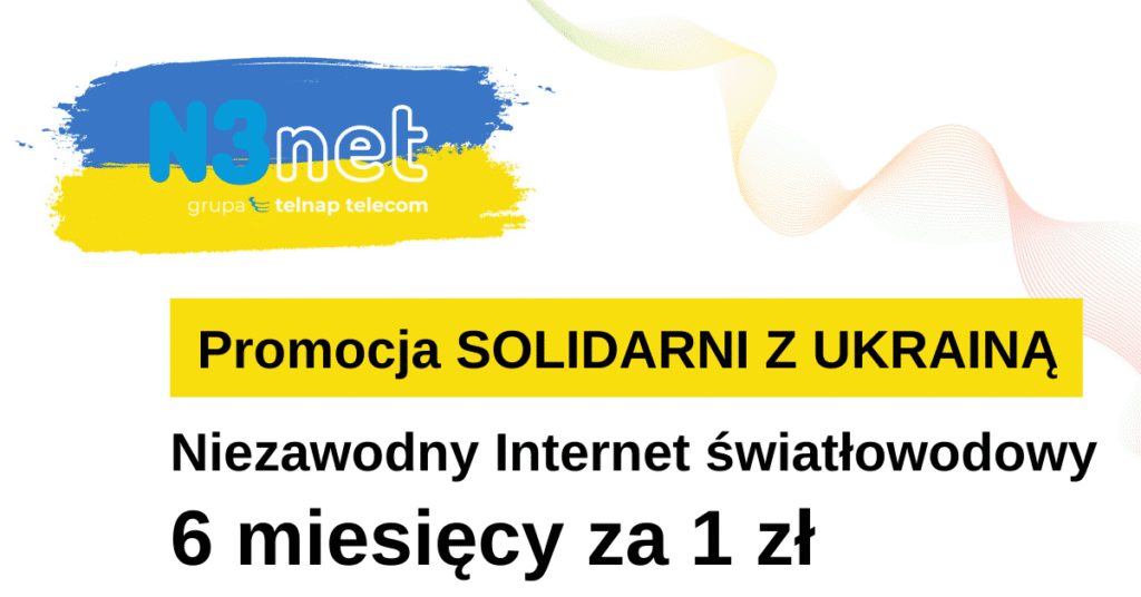 Jeśli należnych do osób, które pomagają obywatelom Ukrainy, zapewniając im bezpłatne zakwaterowanie w tym trudnym dla nich czasie, N3net ma dla Ciebie specjalną promocję na Internet światłowodowy „Solidarni z Ukrainą”.